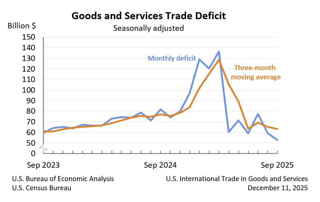 Labor market uncertainty has remained elevated throughout the year, with recent numbers revealing a drop in hiring into the end of 2025. Part of this uncertainty has surrounded price increase concerns, with companies potentially having to pass higher-priced items onto consumers in exchange for employee retention, or absorb and maintain profit margins with layoffs. November 2025 inflation cooled, with the trade deficit declining from the start of the year. As the deficit returns to earlier levels, we’ll be able to better parse whether the dual mandate is being directly affected by tariffs.