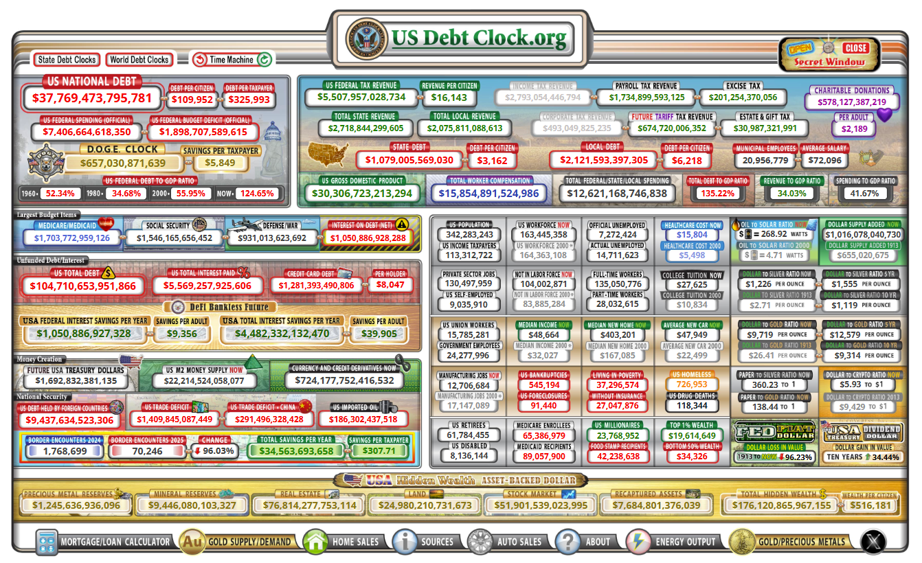 The U.S. federal deficit is projected at $1.9 trillion (6.2% of GDP) for FY 2025, keeping Washington on an elevated borrowing path. Total federal spending is running above $6.6 trillion, while revenues—though improving—remain insufficient to close the gap.